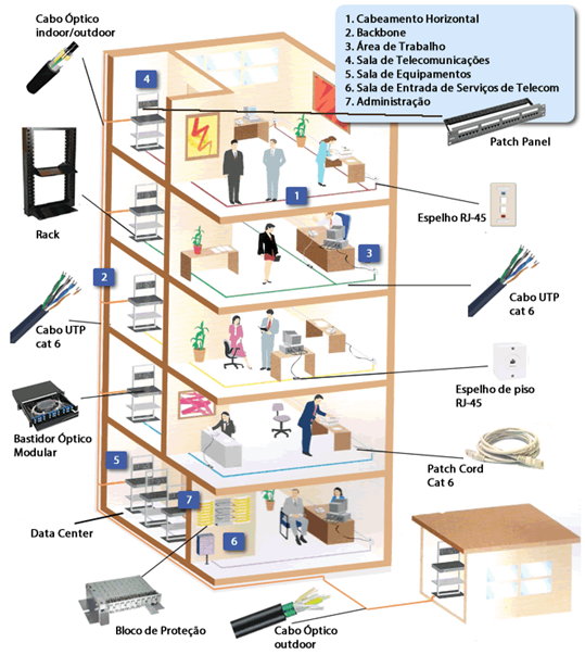 UTP (Unshielded Twisted Pair): cabo sem blindagem, mais barato e fácil de instalar, porém mais vulnerável a interferências eletromagnéticas.